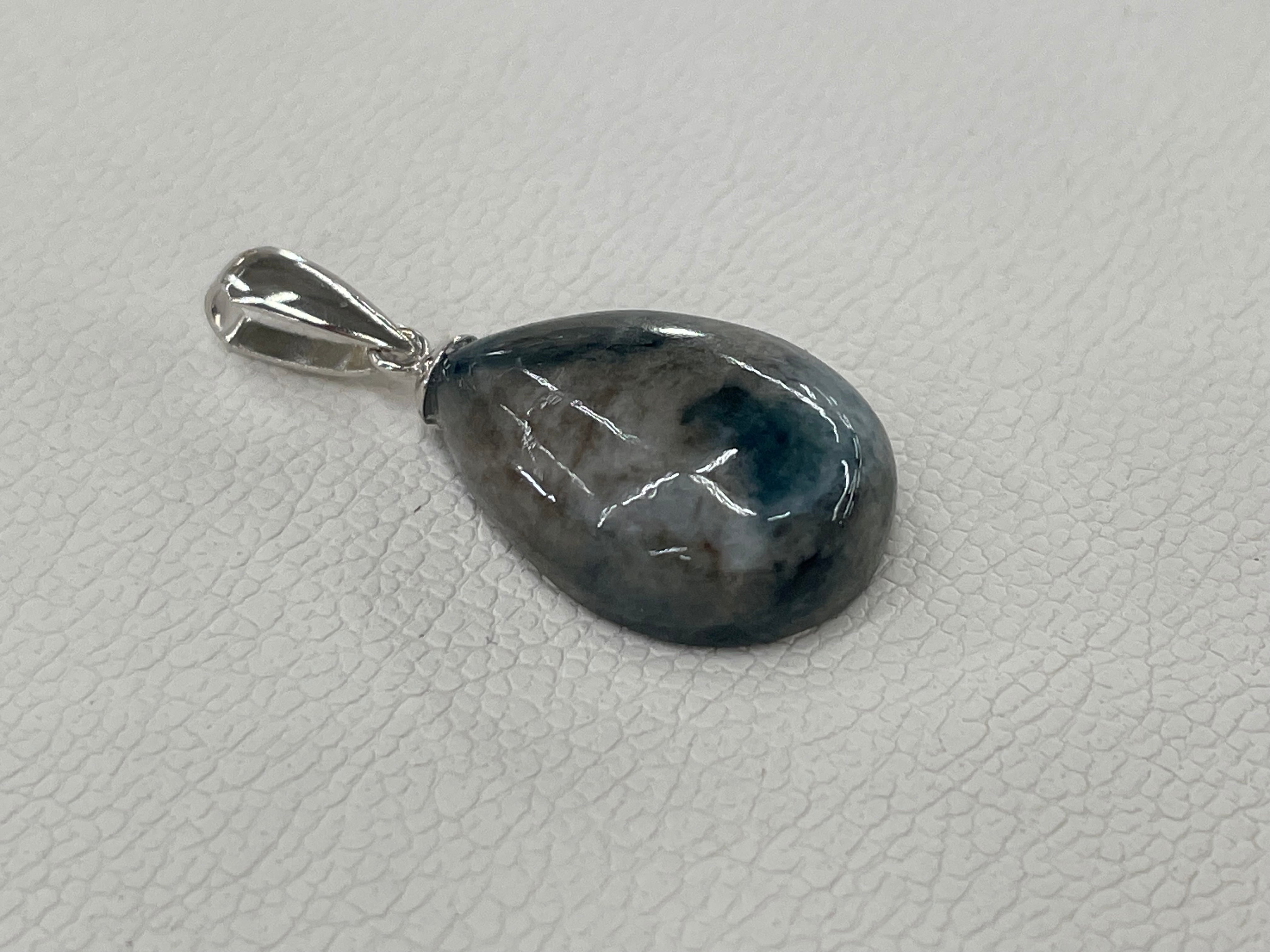 美しい青色の翡翠を雫型に仕立て、洗練されたデザインが際立つ一品です。シンプルながらも、どんなスタイルにも合わせやすく、日常使いはもちろん特別な日にもぴったりなアクセサリーです。